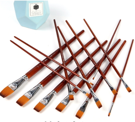 平峰双色尼龙油画笔 平头水粉笔颜料笔刷丙烯油画尼龙画笔